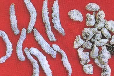 小蜂儿(《日用本草》)。 是高蛋白的营养品。晚蚕砂 (蚕屎)、蚕蜕、蚕茧、白僵蚕 (感染白僵菌病死的蚕)等,都作药用。