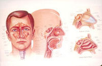(三)当肥大的中鼻甲压迫鼻中隔时,可引起三叉神经眼支所分出的筛前神经受压或炎症,出现不定期发作性额部疼痛,并向鼻梁和眼眶放射,称筛前神经痛,又称筛前神经综合征。