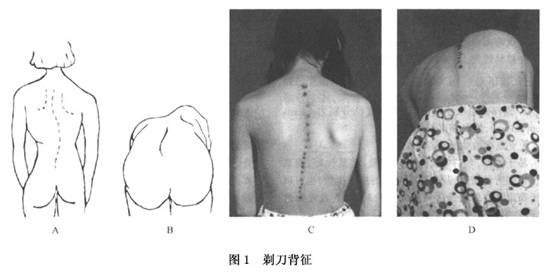 (4)腰前屈时两侧背部不对称,即剃刀背征。