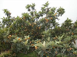 枇杷的学名为「Eriobotrya Japonica」,是双子叶植物,属蔷薇科的长绿树,高度可以达到10米。叶子呈椭圆形、互生,呈锯齿状的刻痕。表面有光泽,里面有密生的毛。能放出芳香的白色花在11月份开始开花。果实呈卵形、椭圆形、圆形等各种各样的形状。在5-7月左右香味较浓的橙黄色的果实成熟季节,洞庭山层层苍翠的群山之中,黄澄澄的枇杷,挂满枝头,有人喻为“黄金丸”,有人称之为“小金锤”。明代沈周诗云:“谁铸黄金三百丸,弹胎微湿露渍渍。从今抵鹊何消玉,更有锡浆沁齿寒。”。芳香的果实很贵重,种子、叶子、树干也有