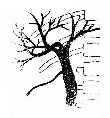 图5-53 术后胆管造影,示胆管不规则狭窄与扩张