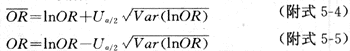 式中的U,可查标准正态差简表(附表5-1),Uα/2可查α/2单侧检验的Uα值。最常用的95%可信限按下式计算(上限记为ORU,或OR,下限记为ORL或OR):