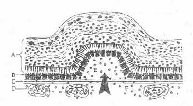 真实病因不详,精神紧张、情绪激动、感染、过敏、脉络膜静脉引流障碍、热调节功能衰竭均能促发本病。上述因素能使脉络膜毛细血管渗透性改变,色素上皮受损,破坏了血视网膜外屏障,渗出液通过Bruch膜进入视网膜色素上皮下形成色素上皮层脱离,久之发生变性,细胞间的紧密联接受损。色素上皮屏障缺损时,浆液便进入视网膜下间隙。毛细血管的渗漏也可通过色素上皮细胞的损害进入视网膜下间隙。(图12-5~7)